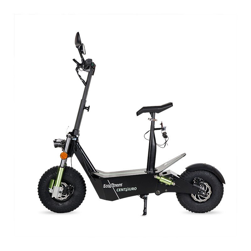 Si lo que buscas es un 3000w todo terreno, negro y verde, matriculable, cómodo y potente, Centauro negro y verde es tu patinete ecológico que se convierte en ciclomotor para disfrutar por la ciudad.